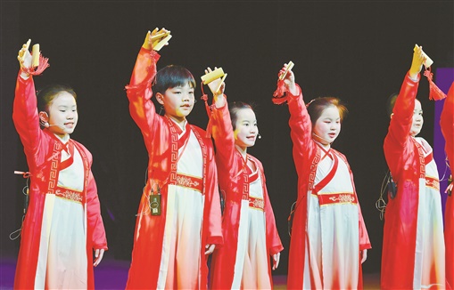 4月11日,湖南省文化馆群星剧场,演员在表演快板朗诵《中华英雄》。当天,湖南省文化馆举办“湖湘潮 迎华诞——2021红色经典诵读·湖湘少年中华颂”活动,通过朗诵、京剧、歌舞、合唱等表演艺术形式呈现红色经典。
