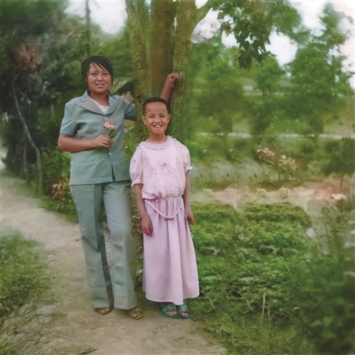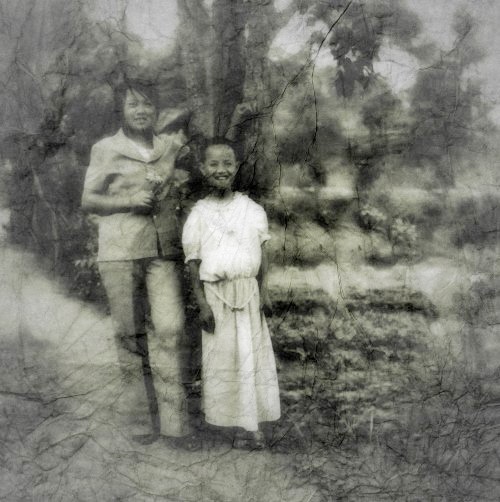 摆在记者眼前的一张黑白老照片,依稀可见一对小姐弟站在一棵树旁面带微笑,照片细节损坏严重,照片中人物五官模糊。