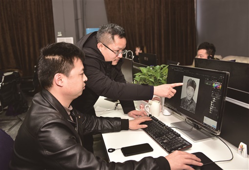 在怀化市河西经开区文创社区一栋写字楼前,“怀化市八色数码网络科技有限公司”的招牌格外显眼。工作室里,50多名员工在有条不紊地工作,室内一片噼噼啪啪的键盘敲击声。