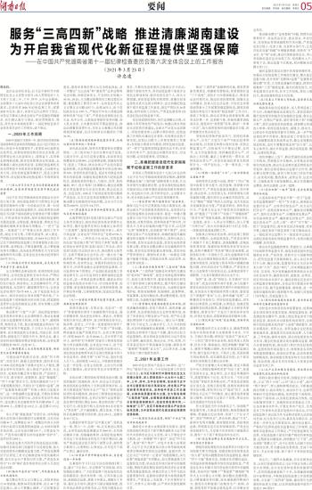 服务“三高四新”战略 推进清廉湖南建设 为开启我省现代化新征程提供坚强保障