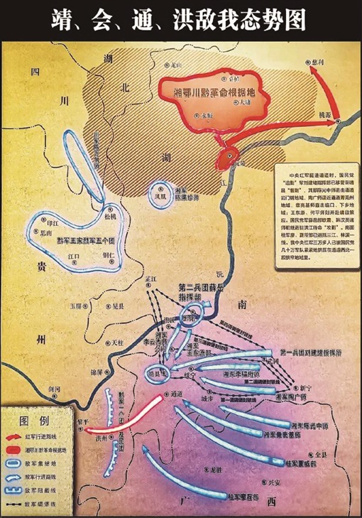湘江战役后,从过老山界起,中央政治局一路开会,讨论红军的战略方向等问题。按照最初的战略设想,是北出湘西等地与红二、六军团会合。然而,“当时,为防止中央红军北上与红二、六军团会合,数十万国民党军队早已抢先在湖南通道以北进入阵地,一个更加凶险的危局眼看就要来临”,通道转兵纪念馆馆长郑湘介绍道。