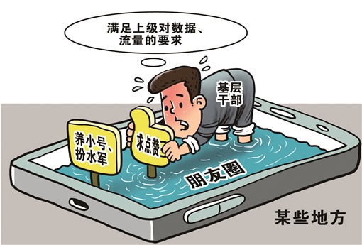 衡量学习教育工作做得好不好,签到、积分数据是“硬杠杠”;社区日常工作也要登报上网,以转发、点赞、跟评数量证明群众“满意”,吸引领导“注意”……眼下,一些基层干部在完成大量实际工作之余,还要养小号、扮“水军”、在朋友圈里求点赞,以满足上级对数据、流量的要求。