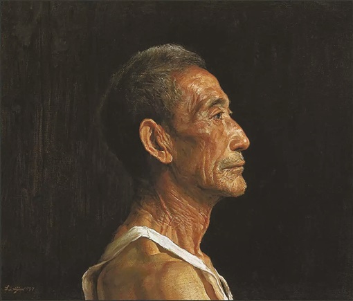 李自健曾经给父亲画过不少素描头像,但没有画过油画,总觉得以后有的是机会。出国的前一天,他为父亲写生侧面头像。父亲因为体弱疲惫竟然不一会就完全睡着了。李自健不忍心唤醒,只得搁笔。到美国后凭着对父亲的记忆,改用油彩画完心目中的父亲。这是唯一的一幅关于父亲的油画。后来这幅画在美国加州拉克曼美术馆展出时,主办方选它做了画展的海报,被当地媒体称为“一张充满感情张力的画”。