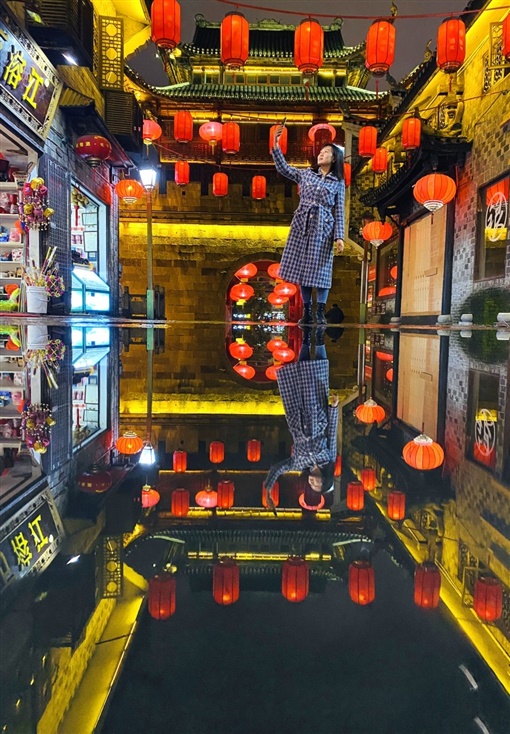 4月20日晚,吉首市乾州古城灯光璀璨,美轮美奂,吸引了游客欣赏游玩。凌佳懿 摄 |