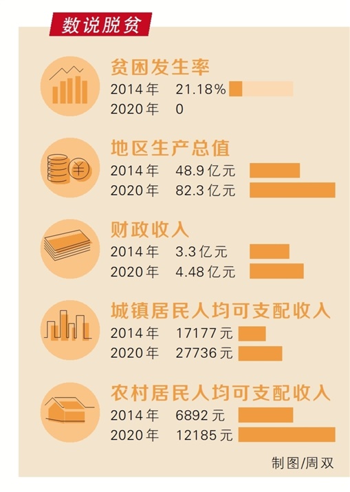 一个个民生工程“遍地开花”,结出累累硕果。到2017年,全县62个贫困村脱贫出列,“省扶贫开发工作重点县”帽子被摘掉。