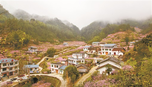 3月12日,炎陵县以“百里桃花红、最美湘赣边”为主题举办2021年桃花节,来自全国各地的1000多名游客,沿着蜿蜒的山路到达该县中村瑶族乡平乐村赏花拍照、预购黄桃。