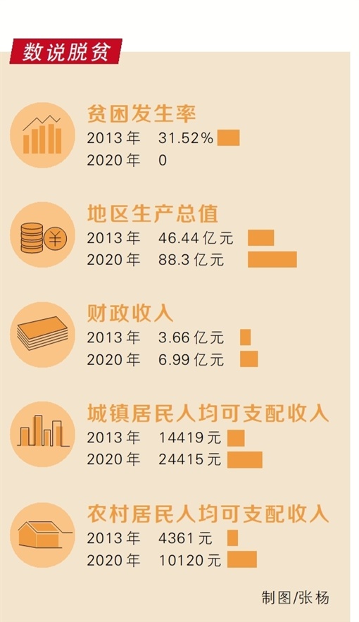 永顺古称溪州,是土家族发源地之一。8年来,该县坚持把脱贫攻坚作为最大的政治任务和第一民生工程来抓,上下齐心、尽锐出战,坚决打赢打好脱贫攻坚战。截至2020年底,全县190个贫困村全部出列,14.4万名贫困群众全部脱贫,农村居民人均可支配收入增加到10120元,彻底解决了困扰永顺人民千百年来的绝对贫困问题。
