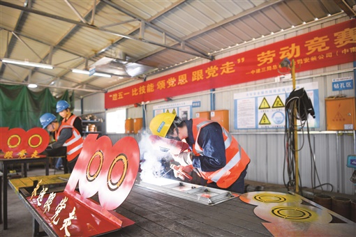 4月29日,参赛选手在用建筑材料制作“建党100周年文化产品”。当天,中建三局总承包公司安装公司长沙县人民医院项目开展“迎五一、比技能、颂党恩、跟党走”主题劳动技能竞赛,100多名职工通过唱党歌、比技能等方式颂党恩、跟党走,迎接建党100周年。