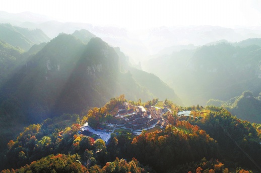 2018年10月29日,十八洞村秋意尽显,色彩斑斓的树叶沐浴在晨曦之中,构成一幅美丽的画卷。 湖南日报·新湖南客户端记者 李健 摄