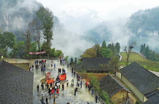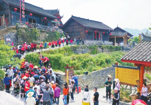 2020年5月1日,十八洞村迎来了60多人的省内旅游团。2013年以来,该村抢抓国家扶持贫困地区发展乡村旅游的机遇,大力发展乡村旅游,建成了十八洞景区。 郑翔 摄 |