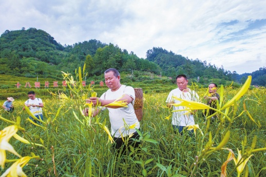 2020年7月9日,十八洞村,村民在采摘黄花菜。该村建成了160余亩的黄花菜产业基地,壮大了村集体经济。 姚茂祥 摄 |