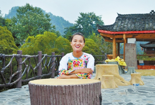 施芳丽,导游,嫁到十八洞的“俏媳妇”,现为十八洞景区的一名讲解员,月收入2000多元。 湖南日报·新湖南客户端记者 李健 摄 |
