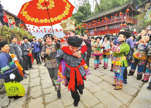 2017年1月15日,十八洞村村民龙先兰,迎娶邻村姑娘吴满金。2016年,龙先兰靠养蜂致富。 湖南日报·新湖南客户端记者 童迪 摄 |