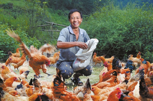 十八洞村村民施关保,养了200多只土鸡、30头黄牛,一年收入至少10万元。 湖南日报·新湖南客户端记者 李健 摄 |
