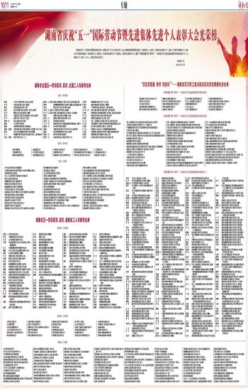 湖南省庆祝“五一”国际劳动节暨先进集体先进个人表彰大会光荣榜