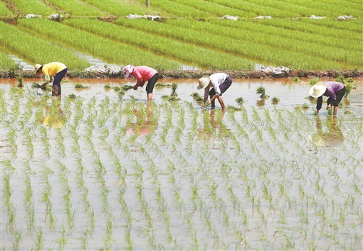 5月5日,衡南县冠市镇梅盐村,农民在田间插秧。当日是二十四节气中的立夏,天气晴好,当地农民抢抓农时,田间地头呈现繁忙景象。曹正平 罗小忠 摄影报道