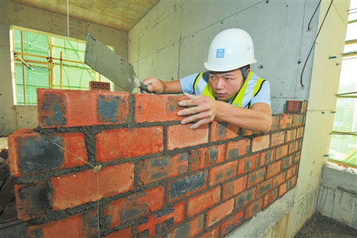初到工地时,邹彬没经验、没技术,连砌砖的资格都没有,只能从“小工”做起。但和灰浆、担泥沙、挑砖头……不管什么脏活、累活他都兴致勃勃地抢着干。一得空,邹彬就跑到老师傅身边,以“帮忙”的名义暗暗学艺,很快,邹彬就开始学砌墙。