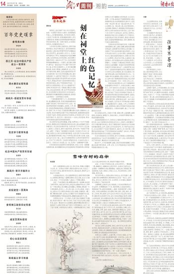 山路崎岖,全被参天的古树遮盖,只有丝丝阴郁的光芒穿过树叶,轻飘飘地洒了下来。细雨绵绵,从浓密的树梢上慢慢流淌下来,滴在我的脸颊上,透着一股清爽的香气。林间深处,大部分是枫香树,也有香樟、柞树、银杏、雪松、楠木、栗树、合欢树、野山桃等,此外还有许多我从未见过的古树品种。镇党委书记张纲学介绍,这片古树品种超过500种。据洞口县林业部门的古树群名录记载,青山村青界仅枫香树林就有12公顷,其中树龄最长的不少于38株,平均高度25米,平均胸径80厘米,大部分古木树龄在200年左右。
