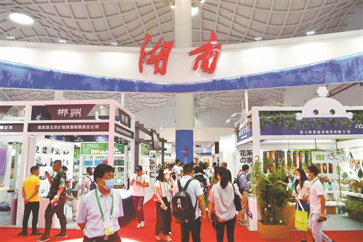 5月7日,参观者在海南国际会议展览中心湖南馆参观。5月6日,首届中国国际消费品博览会在海南省海口市开幕。本次湖南参展企业共49家,展品涉及食品保健品、消费电子、时尚生活、文化创意等类别。
