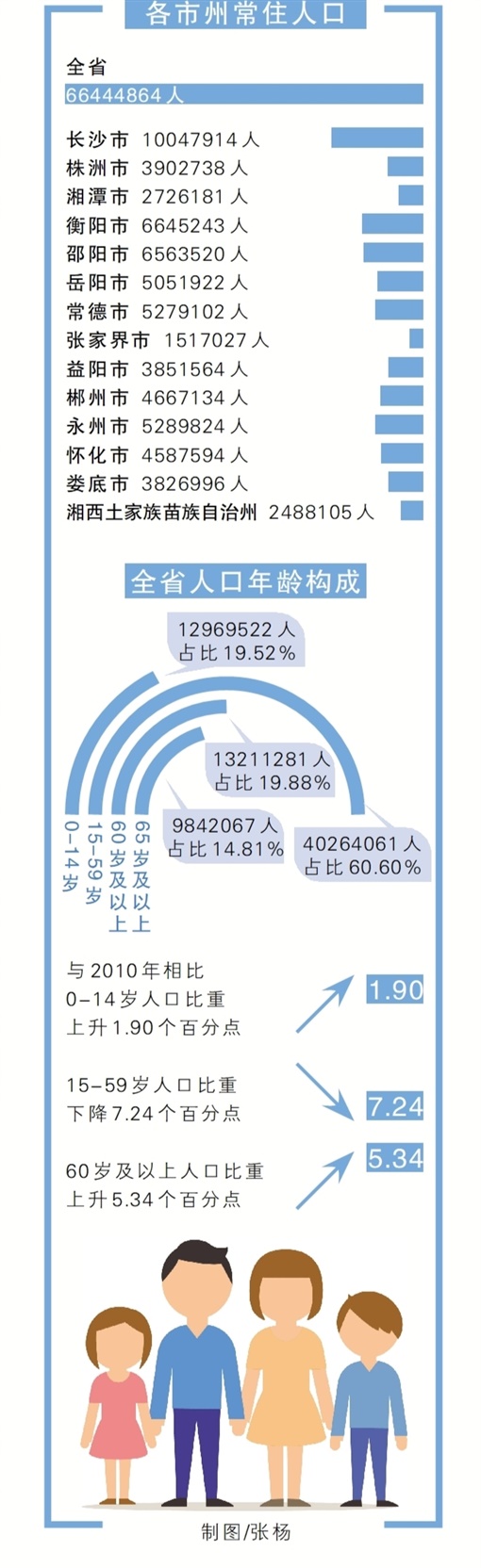 5月19日,我省正式发布湖南省第七次全国人口普查主要数据,在《湖南省第七次全国人口普查公报》中,全省及14个市州主要人口状况清楚呈现——