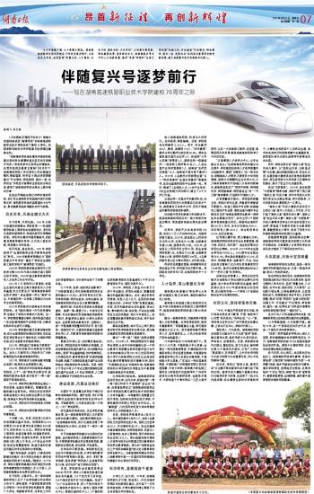 “湖南高铁职院肩负着培养国家铁路建设者的使命,踏着铁道兵坚实的足迹阔步而来。”学校党委书记吴伟生动情地说,在党和政府及教育主管部门的关怀下, 湖南高铁职院人牢记党和人民的期望与嘱托,筚路蓝缕、艰辛奋斗,推动学院朝着建设“行业领先、特色鲜明、国内一流、世界知名”本科层次高等职业院校的目标迈进,奏响了湖南高铁职院发展史上最华美的乐章……