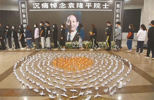 5月23日下午,湖南农业大学吊唁厅,该校师生有序地献花、鞠躬,悼念袁隆平院士,表达对袁隆平院士的追思和缅怀。湖南日报·新湖南客户端记者 郭立亮 辜鹏博 摄影报道