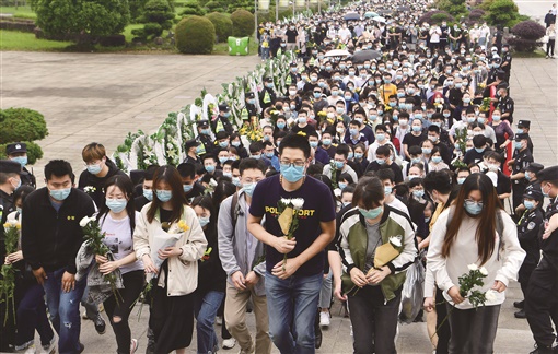 5月24日,来自全国各地的群众悼念送别袁隆平。当天,袁隆平遗体送别仪式在长沙市明阳山殡仪馆举行。湖南日报·新湖南客户端记者 郭立亮 辜鹏博 摄影报道