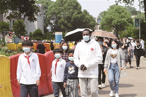 ▲5月24日,来自卢旺达的外教老师带着孩子来到长沙市明阳山殡仪馆悼念袁隆平。