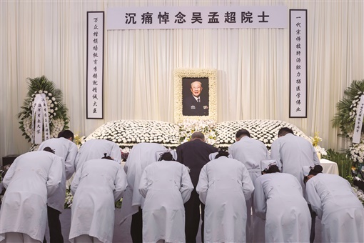记者在追思活动现场看到,这里庄严、肃穆。灵堂中央一副挽联让人对吴院士的一生钦佩不已:一代宗师披肝沥胆力拓医学伟业,万众楷模培桃育李铸就精诚大医。