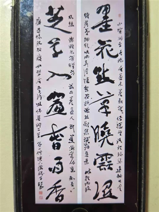 这些年,锡良也许更注重“形而上”的探求。有机会外出,总忘不了遍访美术馆、博物馆,忘不了买书。到联合国总部搞书法展,去大都市博物馆都看了好几次,里面黄庭坚、王铎等的真迹,很令他受用。到香港旅游,时间虽紧,亦不忘去书店,买了一大摞书法方面的书。