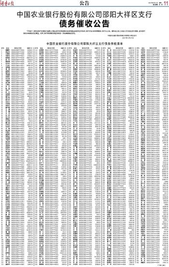 中国农业银行股份有限公司邵阳大祥区支行 债务催收公告