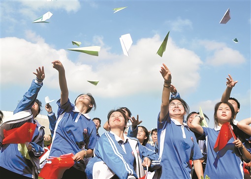 5月31日,嘉禾县第五中学,高三学生在进行解压游戏。高考临近,该校组织高三学生开展一系列解压游戏和心理咨询活动,帮助高三学生缓解压力,调整状态,以饱满的精神、乐观的心态迎接高考。黄春涛 李宇欣 摄影报道