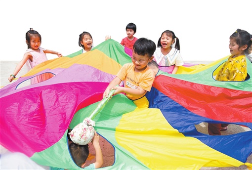 5月31日,宁乡市横市镇中心幼儿园,小朋友在进行趣味游戏。2018年至今,该市通过高位调度、严标准改善办园条件和培训幼师队伍等措施,大力推进25个乡镇学前教育的高质量发展。目前,该市共计投入资金1.4亿元,新改扩建公办幼儿园61所,新增幼儿学位7890个。湖南日报·新湖南客户端记者 唐俊 摄