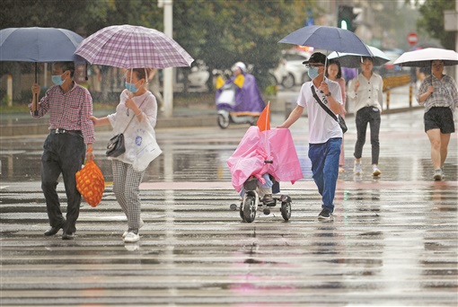 6月3日,长沙市开福区湘江北路,市民在雨中出行。当天上午,湖南省气象台与长沙市气象台分别发布暴雨橙色预警和大风蓝色预警。