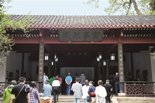 “这里是湖湘士子的道场、庙堂、根据地。三湘四水的读书人在这里汲取知识、修炼品性,而后长成为大材,成就个人,服务社会。”岳麓书院党委书记陈宇翔说,“作为湖湘文化的主要发源地,岳麓书院‘传道而济斯民’的建院宗旨,接近毛泽东确立的党的宗旨‘为人民服务’,它和经世致用的办学理念,与那块 ‘实事求是’匾额所蕴含的深刻哲理,一起孕育了毛泽东思想的灵魂——‘实事求是’”。