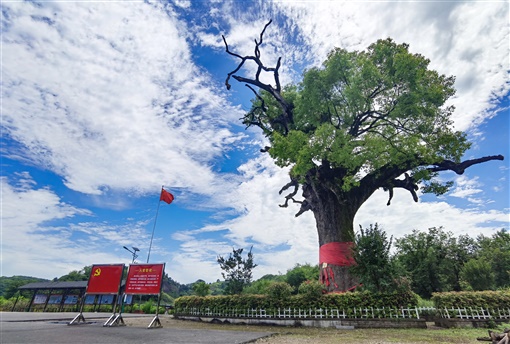 “红军树”树龄超1200年,胸围23米、胸径7.3米,高28米,与唐代大诗人李白、杜甫同时代。站立其下仰望,苍劲的树干如有力的臂膀,守护着一方水土。