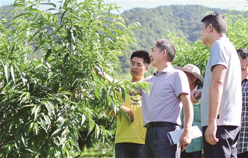 6月7日,双峰县井字镇铜梁村鹰嘴桃种植基地,专家为果农传授技术。铜梁村现有鹰嘴桃、黄金贡柚、油茶果等果园500余亩,近日,驻该村的湖南省残联乡村振兴工作队请来专家,对果农开展线上和线下技术培训,提高果农经营和管理水平,助推乡村振兴。李建新 摄