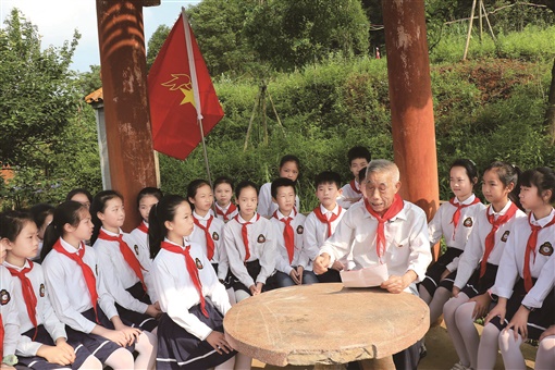 一棵棵老梨树簇拥着一株株小梨树,枝繁叶茂,73岁的村民李安田动情地向学生讲述红军“夜宿梨山,秋毫无犯”的故事。