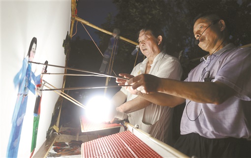 6月16日,衡山县开云镇毛泽建公园,民间艺人在进行红色皮影戏《毛泽建智斗鲁庆煊》的演出。今年,该县充分挖掘本地红色资源,以国家级非物质文化遗产——衡山皮影戏为载体,将皮影艺术的活力注入党史学习教育,用老百姓愿意看、看得懂的形式重温革命故事,展示时代精神,传承红色基因。 曹正平 陈亮 摄影报道