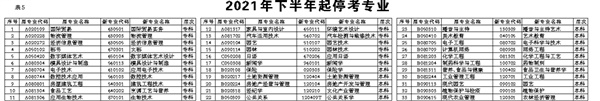 2021年下半年起停考专业