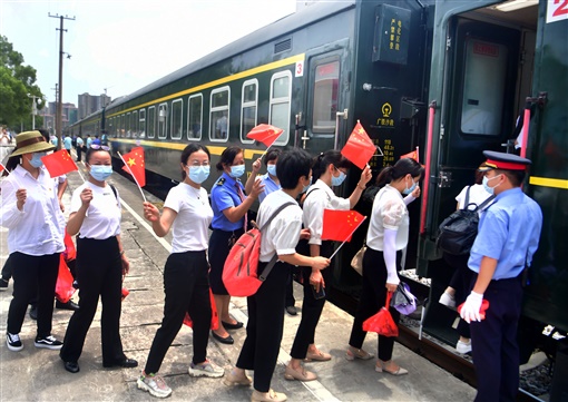 6月18日8时,一列崭新的列车从韶山站开出,驶向井冈山!全国首条红色旅游铁路专线——韶山至井冈山红色专列开通运营。