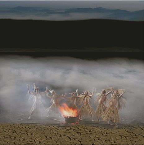 茅古斯是湘西土家族古老而原始的舞蹈,是中国舞蹈及戏剧界公认的最远源头和活化石。拍摄茅古斯舞的过程,让谢子龙感受到土家人存立于天地中的浩然精神力量。“湖南是我的家乡,我对湘西一直有一种天然的情愫,情不自禁地想要走近、表现和记录那里古老而又神奇的文化。”同时,他认为,茅古斯在今天应该跳脱出传统的语境,应该置入更宏大的场景中。“于是我想到了数字技术,用自己原来拍摄的那些壮美的风景作为素材背景,重新演绎茅古斯。创作中,我还通过场景选择、布光运用等多种拍摄技法,尽力增强画面造型的戏剧效果,以期茅古斯的影像作品能够吸引和留住更多现代人的目光。”