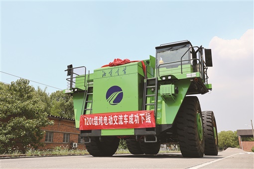湖南日报·新湖南客户端6月23日讯(记者 曾佰龙 通讯员 戴博)今天,世界首台120吨级纯电动交流传动矿用电动轮自卸车在湘潭下线。该车由湘潭老牌国企湘电集团有限公司研制,当天发往内蒙古矿山。