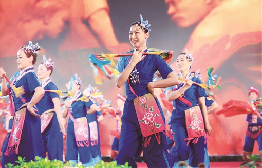 6月23日晚,张家界市武陵源区吴家峪门票站广场,选手们在进行广场舞比赛。当天,该区举办庆祝中国共产党成立100周年文化活动季——全民广场舞大赛,来自全区的17支代表队参加比赛,以活力、动感的舞姿展现团结向上的新时代风貌。 吴勇兵 摄
