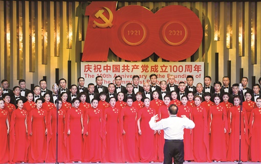 6月27日,参赛合唱队在演唱《党啊 亲爱的妈妈》。当天,“欢乐潇湘 颂歌向党”湖南省庆祝中国共产党成立100周年群众合唱比赛在湖南音乐厅举行。湖南日报·新湖南客户端记者 傅聪 龙文泱 摄影报道