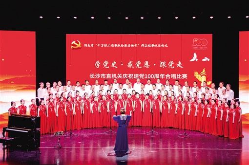 长沙市直机关干部职工以“学党史·感党恩·跟党走”炙热的心庆祝建党100周年。6月15日,长沙市直机关庆祝建党100周年合唱比赛在梅溪湖国际文化艺术中心举行,市直机关36支合唱团、2000余名干部职工用美妙歌声讴歌党的光荣历史,赞颂党的光辉业绩,表达对党的无限忠诚之志和无比热爱之情。