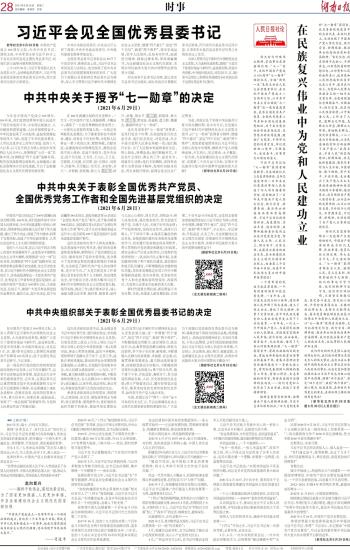 为深入贯彻习近平新时代中国特色社会主义思想,大力选树先进典型,激励广大党员干部更好地奋斗新时代、奋进新征程,经党中央同意,中央组织部决定,对在县(市、区、旗)委书记岗位上取得优异成绩的103名同志授予全国优秀县委书记称号。