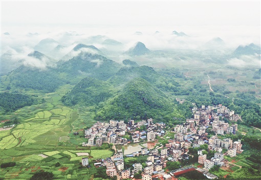 6月29日,嘉禾县广发镇新元坊村,云雾、青山、田园与村庄交相辉映,秀美如画。今年来,该县加大生态环境保护,实施农村人居环境整治,村容村貌焕然一新,呈现出生态美、环境优、产业兴的良好发展态势。黄春涛 摄