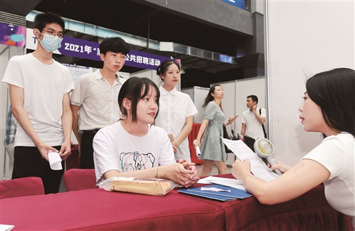 7月7日上午,由省人社厅主办的“湘人才”公共招聘活动首场招聘会在省人力资源服务中心人才交流大厅举行,53家企业提供各类岗位3000多个。本月起,省人社厅将定期在省人力资源服务中心开展“湘人才”公共招聘活动,服务各类重点人才。湖南日报·新湖南客户端记者 田超 摄