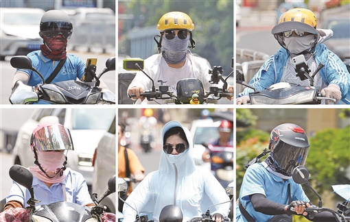7月11日,长沙市街头,外出的不少市民“全副武装”抵挡灼人的阳光。当天是入伏第一天,长沙市气象台发布高温橙色预警,城区最高气温达到36℃。省气象台预计,近期我省大部分地区仍以晴热高温天气为主,局地可达38℃以上,公众需做好防暑降温。